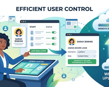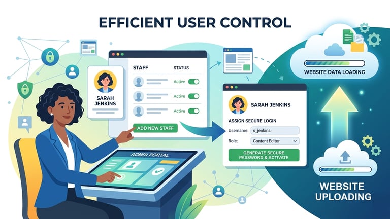 Admins add staff and assign secure logins effortlessly.